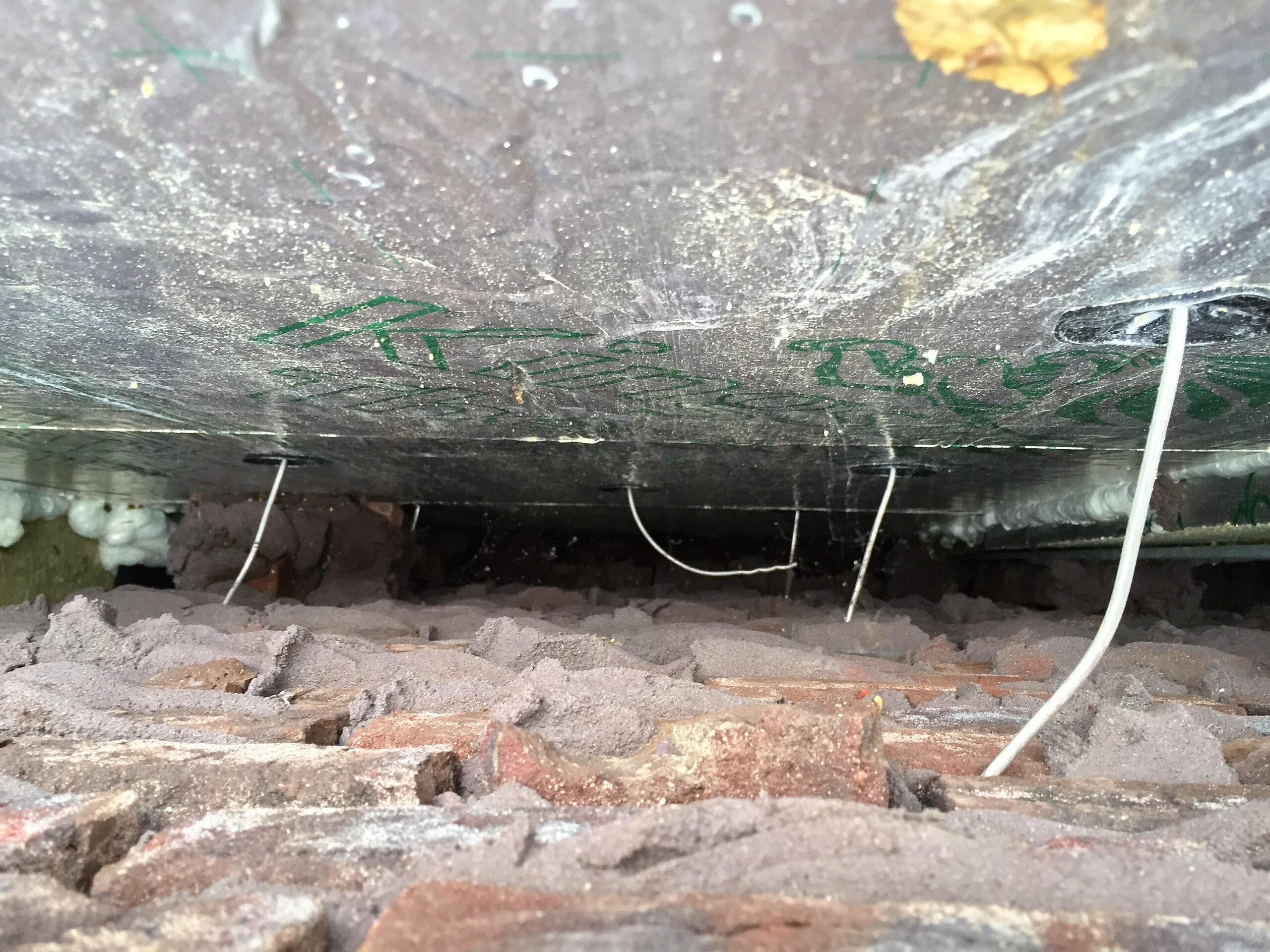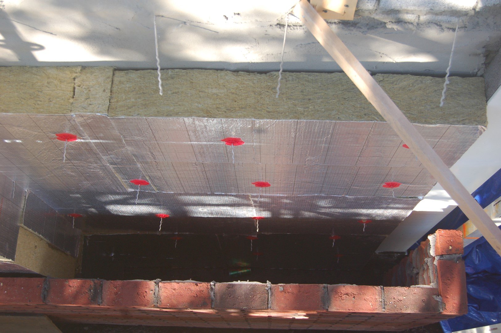 - Binnen 200 mm vanaf de bovenzijde van het metselwerkvlak hoort ook de eerste rij spouwankers te zitten.